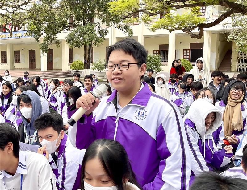 Học sinh tham gia giao lưu trả lời câu hỏi.