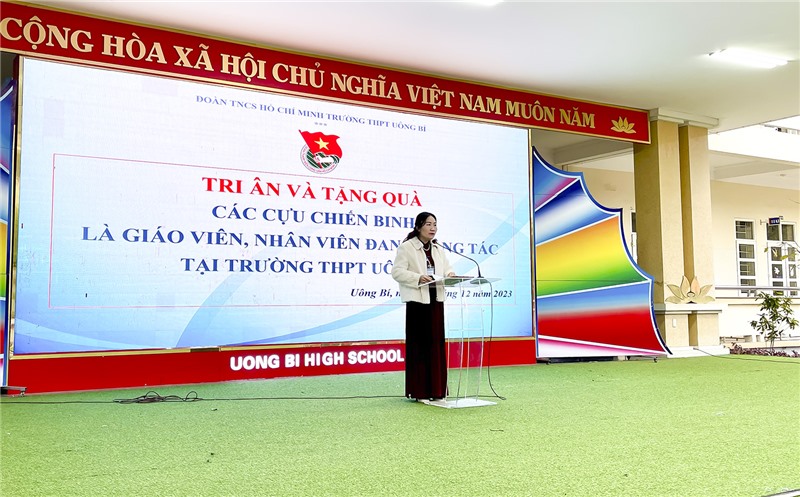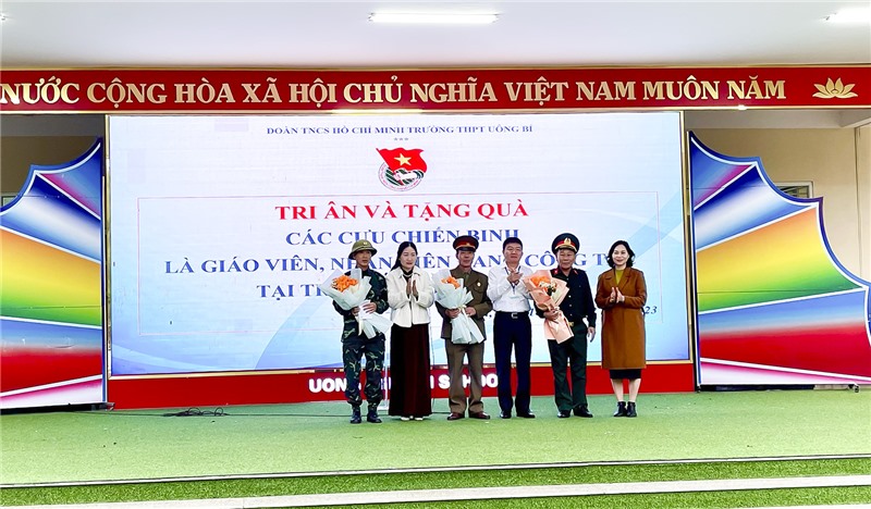 Ban lãnh đạo nhà trường cũng đã tặng quà tri ân các đồng chí là cựu chiến binh hiện đang công tác tại Trường THPT Uông Bí và các thầy giáo, cô giáo giảng dạy bộ môn Quốc phòng - An ninh của trường.