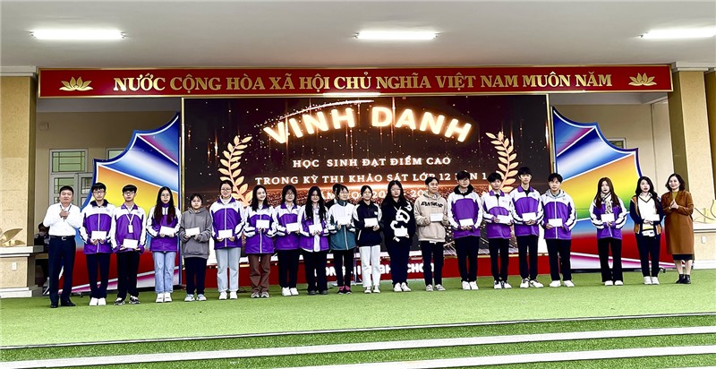 Trường THPT Uông Bí cũng đã khen thưởng 18 em học sinh đã đạt thành tích cao tại Kỳ thi khảo sát lớp 12 lần 1 năm học 2023 - 2024.