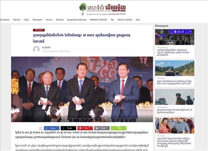 Trong một bài viết ngày 5/1, trang tin dap-news.com của Trung tâm Thông tin Cây Me (DAP News) đăng tải bài viết với tiêu đề “Kỷ niệm 46 năm Ngày chiến thắng 7/1: Tinh thần đoàn kết trong sự kiện giải phóng dân tộc” với nhiều thông điệp ý nghĩa về tình hữu nghị Việt Nam - Campuchia.