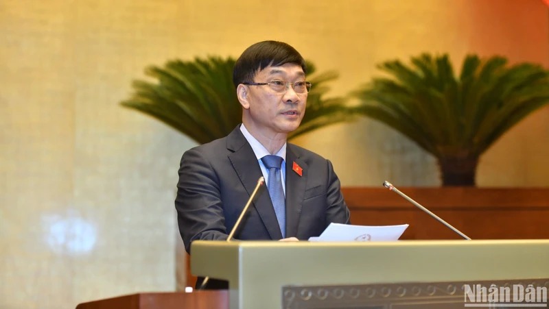 Ủy viên Ủy ban Thường vụ Quốc hội, Chủ nhiệm Ủy ban Kinh tế của Quốc hội Vũ Hồng Thanh trình bày Báo cáo giải trình, tiếp thu, chỉnh lý dự thảo Luật Đất đai (sửa đổi). (Ảnh: ĐĂNG KHOA)