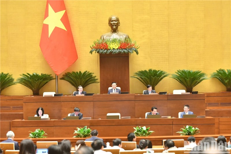 Chủ tịch Quốc hội Vương Đình Huệ và các Phó Chủ tịch Quốc hội điều hành phiên họp. (Ảnh: ĐĂNG KHOA)