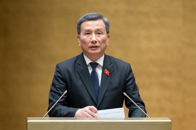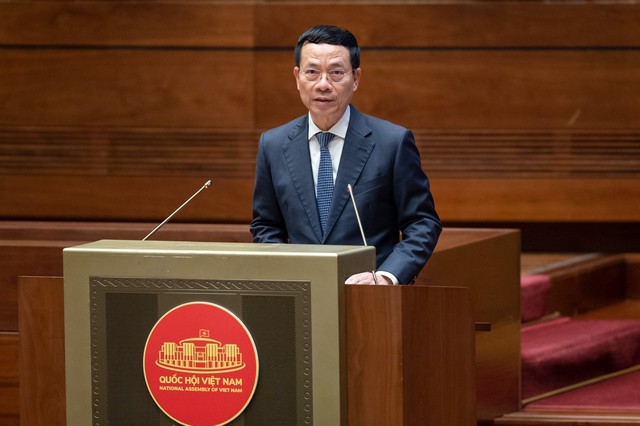 Báo cáo tại Quốc hội, Bộ trưởng Bộ TT&TT Nguyễn Mạnh Hùng khẳng định sự cần thiết xây dự án Luật Viễn thông (sửa đổi) - Ảnh: VGP