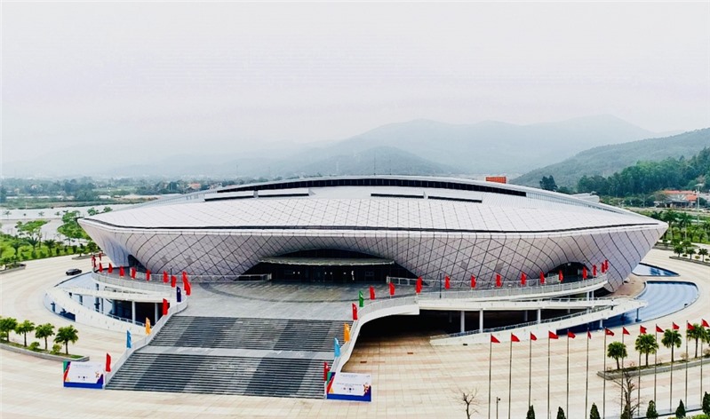 Nhà thi đấu 5.000 chỗ (ảnh trên) và Sân vận động Cẩm Phả (ảnh dưới) được tỉnh đầu tư nhiều hạng mục đảm bảo tiêu chuẩn, phục vụ cho các môn thi đấu của SEA Game 31.