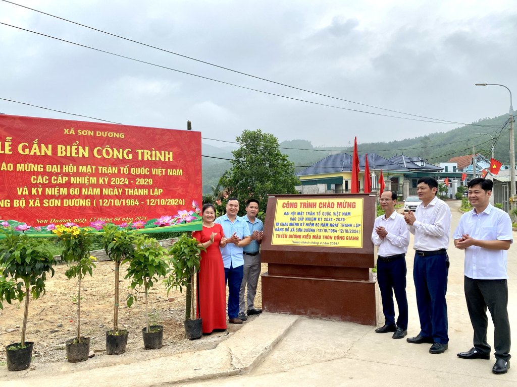 Xã Sơn Dương (TP Hạ Long) tổ chức gắn biển công trình chào mừng đại hội MTTQ các cấp nhiệm kỳ 2024-2029 cho tuyến đường kiểu mẫu thôn Đồng Giang (tháng 4/2024).