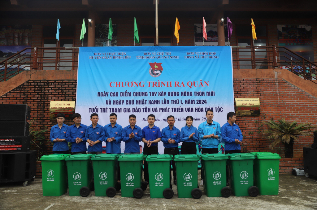 Huyện Đoàn Bình Liêu trao tặng thùng rác cho người dân tại xã Húc Động (huyện Bình Liêu).