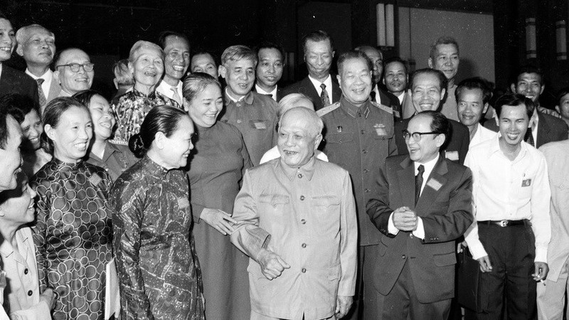 Chủ tịch Tôn Ðức Thắng và các đại biểu tại Ðại hội Mặt trận thống nhất Việt Nam, ngày 31/1/1977. (Ảnh TTXVN)