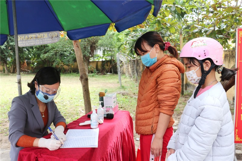 Thực hiện khai báo y tế và lấy mẫu test nhanh SARS-CoV-2 cho học sinh tại Trường TH Trưng Vương.