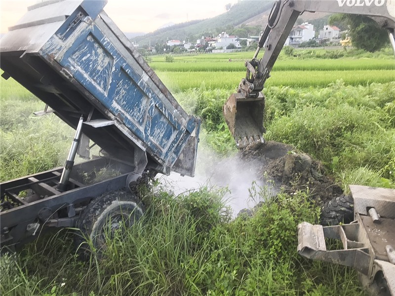 Lực lượng chức năng của Phường Vàng Danh tổ chức tiêu huỷ đàn lợn bị dịch tả lợn Châu Phi của hộ gia đình chị Trương Thị Hạnh, khu 7, phường Vàng Danh.