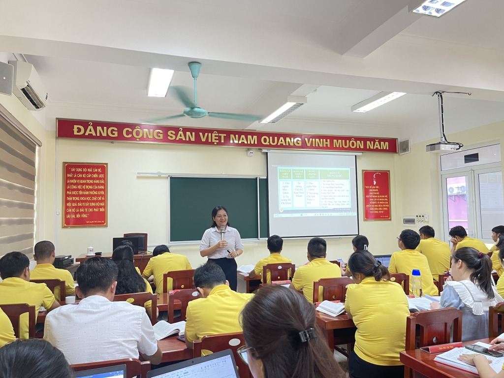 Giờ học môn Xây dựng Đảng của lớp Trung cấp Lý luận chính trị C289, Trường Đào tạo cán bộ Nguyễn Văn Cừ. (Ảnh tư liệu)
