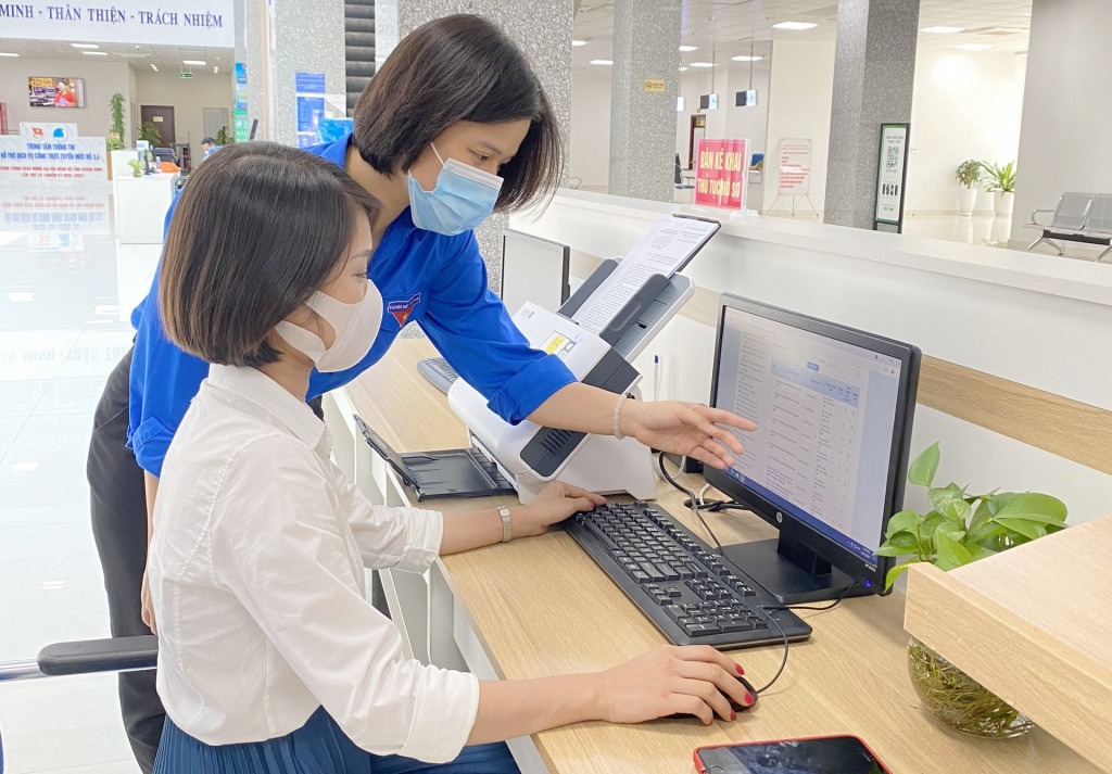 Cán bộ Trung tâm Phục vụ hành chính công tỉnh hướng dẫn người dân giải quyết TTHC qua dịch vụ công trực tuyến mức độ 3, 4. Ảnh: Nguyễn Thanh