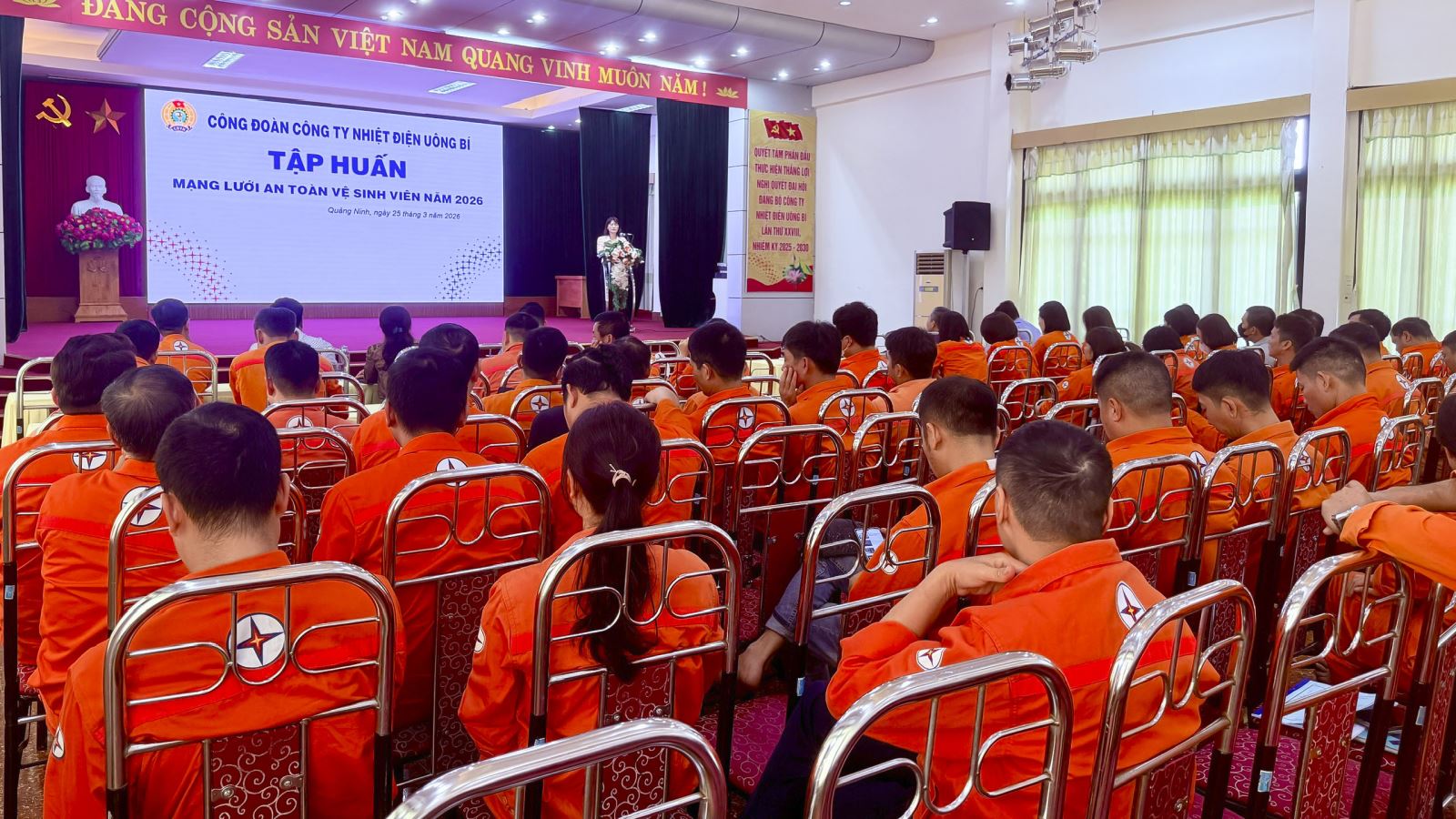 Ngày 25/3/2026, Công đoàn Công ty Nhiệt điện Uông Bí tổ chức lớp tập huấn nghiệp vụ cho mạng lưới an toàn vệ sinh viên (ATVSV), nhằm nâng cao nhận thức, kỹ năng và phát huy vai trò lực lượng nòng cốt trong công tác an toàn, vệ sinh lao động (ATVSLĐ) tại cơ sở.