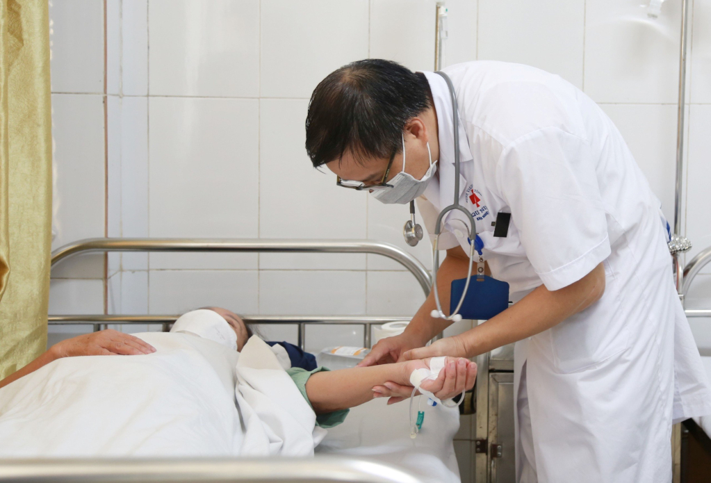 Bác sĩ khoa Bệnh nhiệt đới, Bệnh viện Đa khoa tỉnh thăm khám cho bệnh nhân sốt xuất huyết.