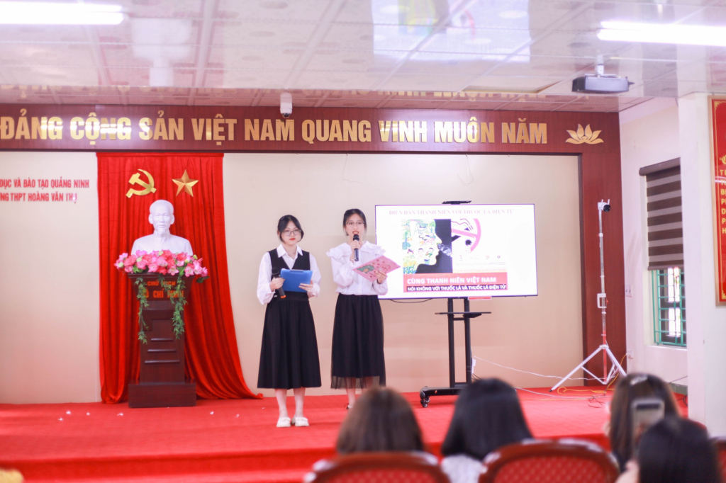Chương trình hùng biện về tác hại của thuốc lá của học sinh Trường THPT Hoàng Văn Thụ (TP Uông Bí).