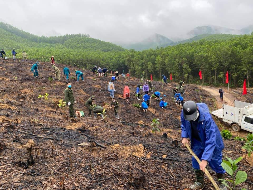 Cán bộ, nhân dân thành phố Hạ Long tổ chức trồng cây gỗ lớn tại thôn Đèo Đọc, xã Đồng Lâm.