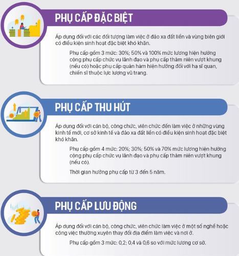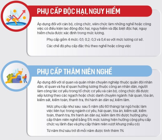 Nhiều khoản phụ cấp đối với cán bộ, công chức, viên chức sẽ được điều chỉnh tăng từ 1/7/2023. Đồ họa SGGP
