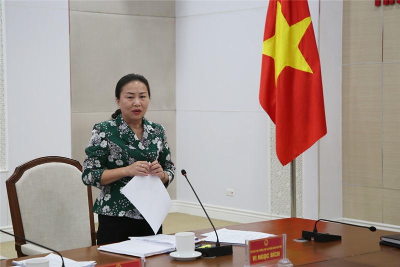 Đồng chí Vi Ngọc Bích, Phó Chủ tịch Thường trực HĐND tỉnh, phát biểu tại cuộc họp.