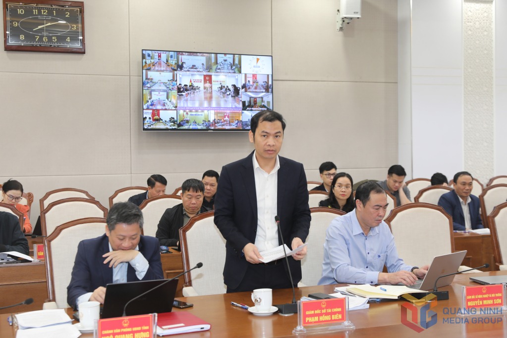 Lãnh đạo Sở Tài chính báo cáo tại cuộc họp.