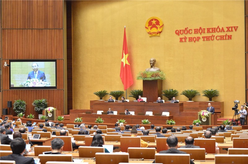 Thủ tướng trình bày Báo cáo của Chính phủ tại phiên khai mạc kỳ họp thứ 9 Quốc hội khóa XIV. Ảnh: VGP/Nhật Bắc