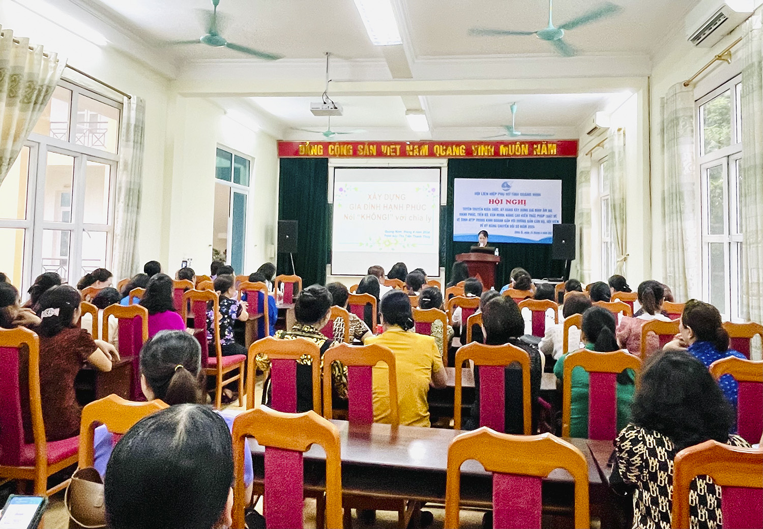 Tại chương trình, báo cáo viên Hội LHPN tỉnh đã tuyên truyền về các phẩm chất đạo đức phụ nữ Việt Nam thời đại mới; bình đẳng giới trong gia đình; vai trò của tổ chức Hội phụ nữ trong công tác xây dựng gia đình ấm no, hạnh phúc, tiến bộ, văn minh; chia sẻ những kinh nghiệm, kỹ năng trong việc xây dựng gia đình hạnh phúc cũng như cách thức tổ chức cuộc sống gia đình, nuôi con khỏe, dạy con ngoan...