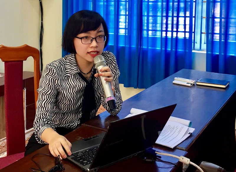 Chuyên viên Sở Du lịch tỉnh phổ biến Luật Du lịch 2017 tại hội nghị (nữ phát biểu).