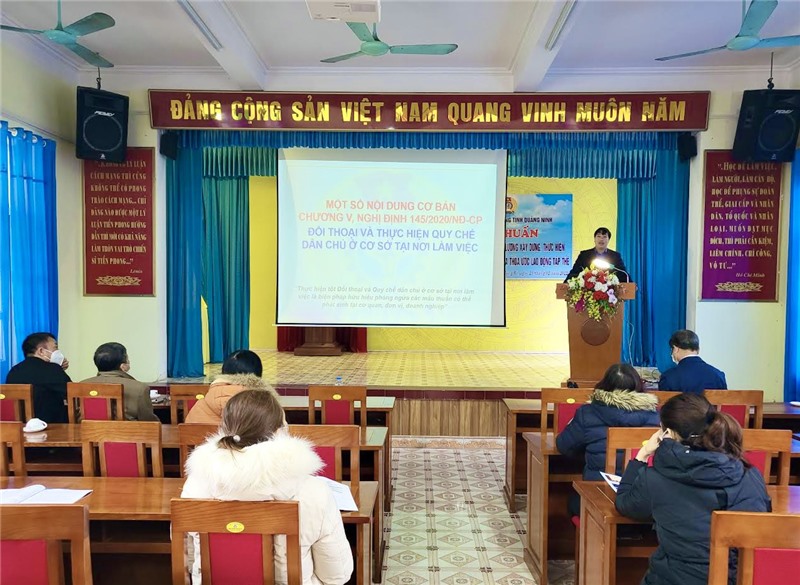Chuyên viên Ban Chính sách pháp luật - Quan hệ lao động, Liên đoàn lao động tỉnh Quảng Ninh truyền đạt những nội dung cơ bản của Chương V, Nghị định số 145/2020.