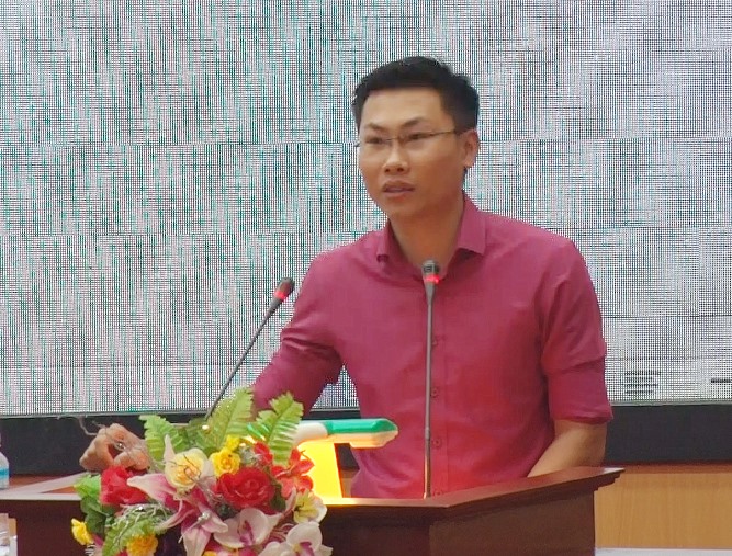 Lãnh đạo phòng Bảo trợ xã hội, Sở LĐ,TB&XH tỉnh truyền đạt các nội dung tại hội nghị.