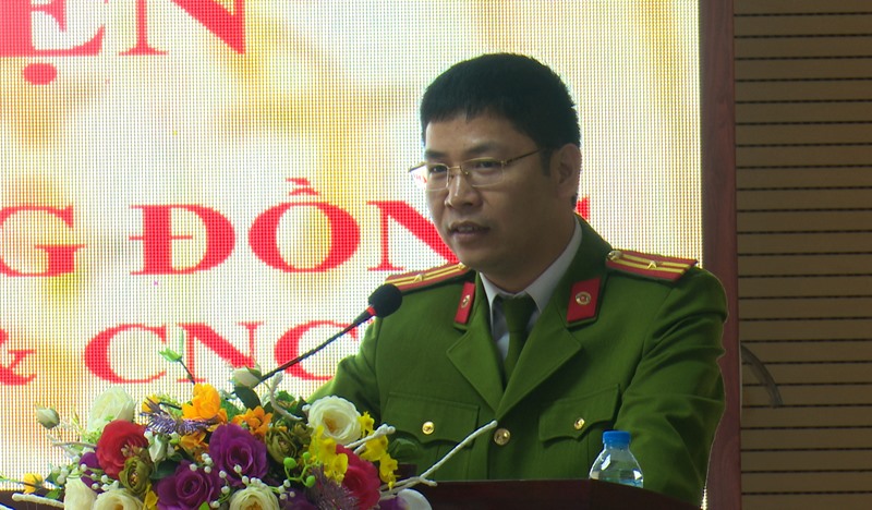 Thiếu tá Nguyễn Tiến Chiến, Phó Phòng Cảnh sát PCCC-CNCH Công an tỉnh phát biểu tại lớp tập huấn.