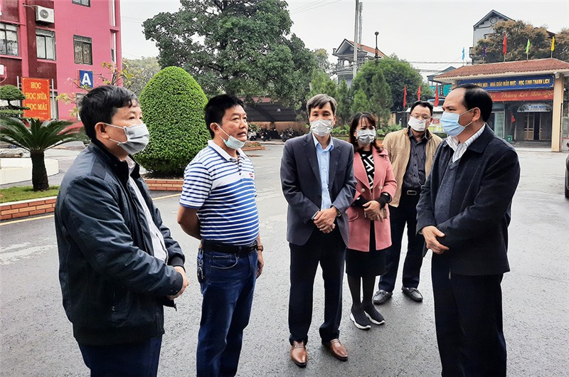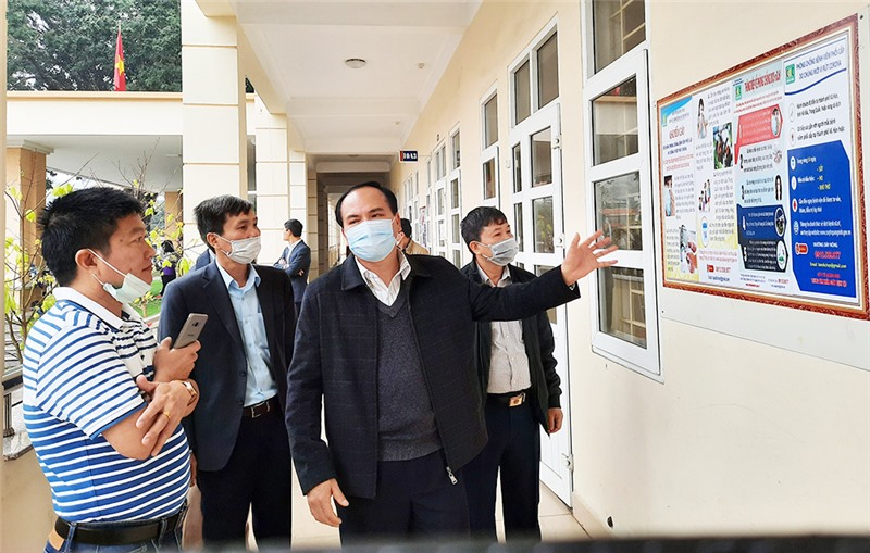 Bí thư Thành ủy Uông Bí Trần Văn Lâm kiểm tra công tác phòng chống dịch viên phổi cấp do vi rút nCoV tại Trường THPT Uông Bí.
