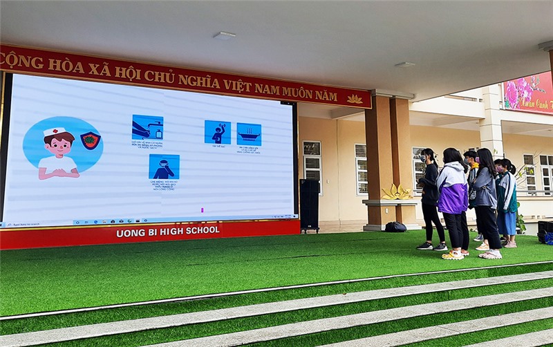 Trường THPT Uông Bí chuẩn bị chương trình truyền thông về phòng chống vi rút nCoV để trình chiếu trên màn hình led cho học sinh vào buổi chào cờ ngày 3/2 tới.