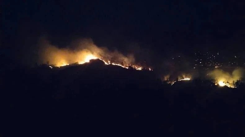 Lửa lan gây cháy trên khu vực đỉnh núi nên khó khăn cho các lực lượng chức năng và người dân tham gia dập lửa. (Ảnh người dân cung cấp)
