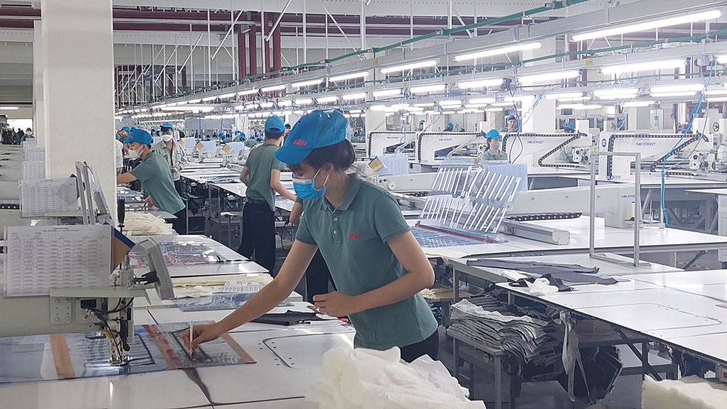 Hoạt động sản xuất tại Công ty TNHH May mặc Hoa Lợi Đạt Việt Nam (KCN Cảng biển Hải Hà). Ảnh: Hữu Việt