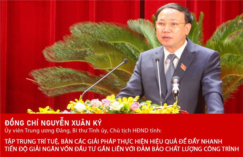PHÁP THỰC HIỆN HIỆU QUẢ ĐỂ ĐẨY NHANH TIẾN ĐỘ GIẢI NGÂN VỐN ĐẦU TƯ GẮN LIỀN VỚI BẢO ĐẢM CHẤT LƯỢNG CÔNG TRÌNH Kỳ họp thứ 4 (kỳ họp chuyên đề) HĐND tỉnh khóa XIV đã chính thức khai mạc vào sáng 30/9. Phát biểu khai mạc kỳ họp, đồng chí Nguyễn Xuân Ký, Ủy viên Trung ương Đảng, Bí thư Tỉnh ủy, Chủ tịch HĐND tỉnh đề nghị các đại biểu HĐND tỉnh và các đại biểu tham dự kỳ họp đề cao tinh thần trách nhiệm, tập trung trí tuê, nghiên cứu, thẳng thắn, dân chủ thảo luận và quyết nghị thông qua các nghị quyết có tính khả thi cao. Trang thông tin điện tử thành phố trân trọng đăng toàn văn phát biểu khai mạc của đồng chí Bí thư Tỉnh ủy, Chủ tịch HĐND tỉnh.