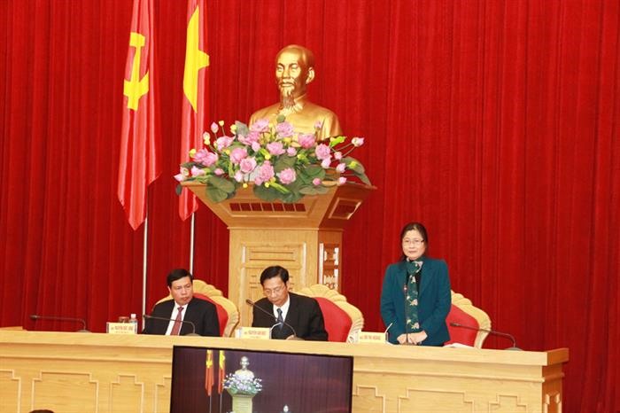 Đồng chí Đỗ Thị Hoàng, Phó Bí thư Thường trực Tỉnh ủy phát biểu tại buổi làm việc.