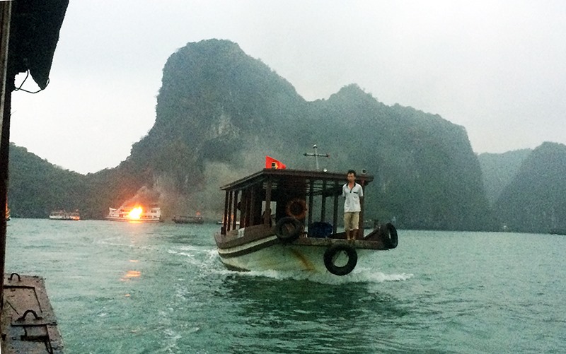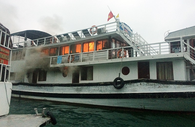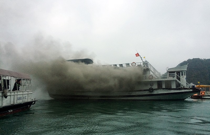 Tàu cháy trên Vịnh Hạ Long, du khách được sơ tán kịp thời và đưa lên bờ an toàn