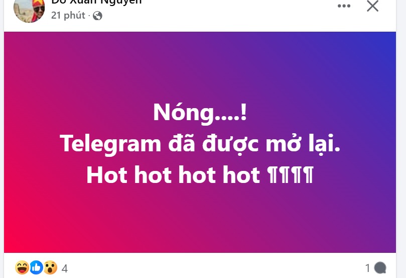 “Tôi bất ngờ thấy thông báo tin nhắn từ các nhóm Telegram đã tham gia từ trước. Nhiều người kết nối trên đó cũng thấy lạ vì app nhắn tin bỗng nhiên hoạt động lại, trong khi trước đó đã có thông báo chặn từ cơ quan chức năng. Tôi nhắn thông tin trên mạng xã hội để báo cho mọi người dùng hay dùng ứng dụng này để liên lạc với một số đối tác nước ngoài”, anh Xuân Nguyên, một giám đốc doanh nghiệp du lịch tại Hà Nội chia sẻ.