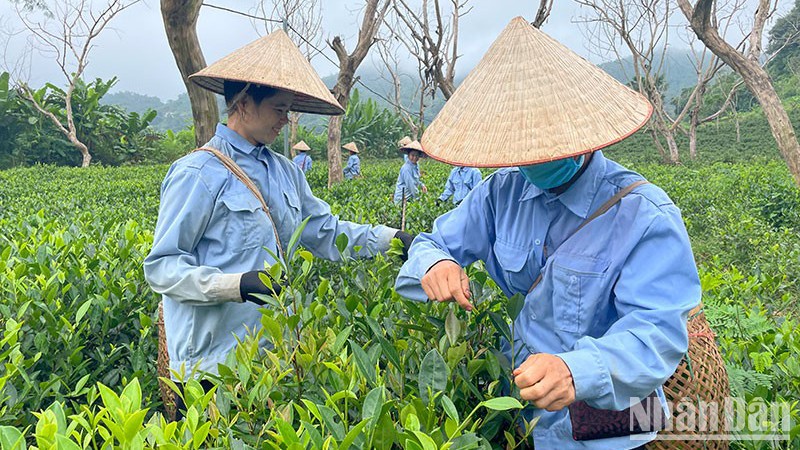 Người dân xã Xuân Lao, huyện Mường Ảng thu hái chè. (Ảnh: Lê Lan)