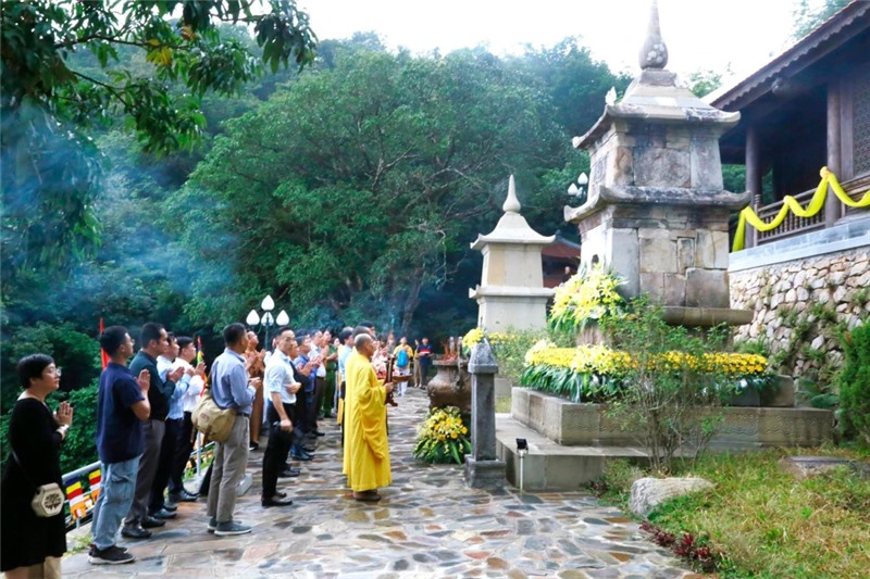 Du khách thập phương về thắp hương tại Am Ngọa Vân, nơi vua Trần Nhân Tông viên tịch. (Ảnh: Ban Quản lý Khu di tích Nhà Trần cung cấp)