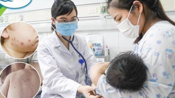 Bác sĩ khám cho bệnh nhi mắc thủy đậu.