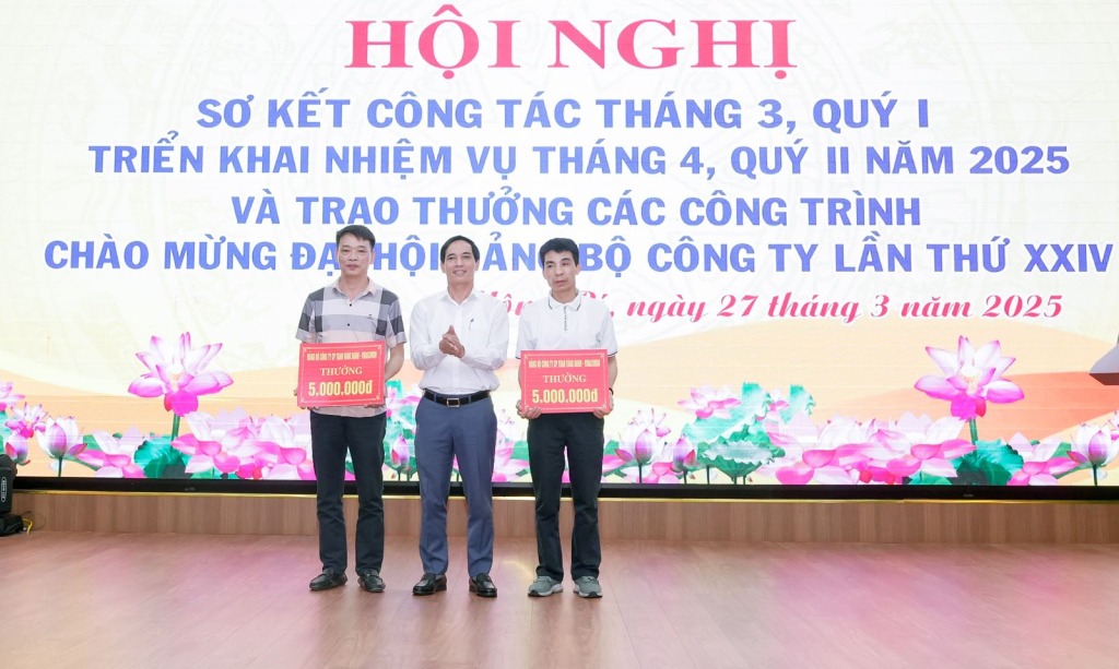 Lãnh đạo Công ty thưởng cho các tập thể hoàn thành đảm nhận công trình chào mừng Đại hội Đảng bộ công ty lần thứ XXIV. Ảnh Phạm Cường - CTV