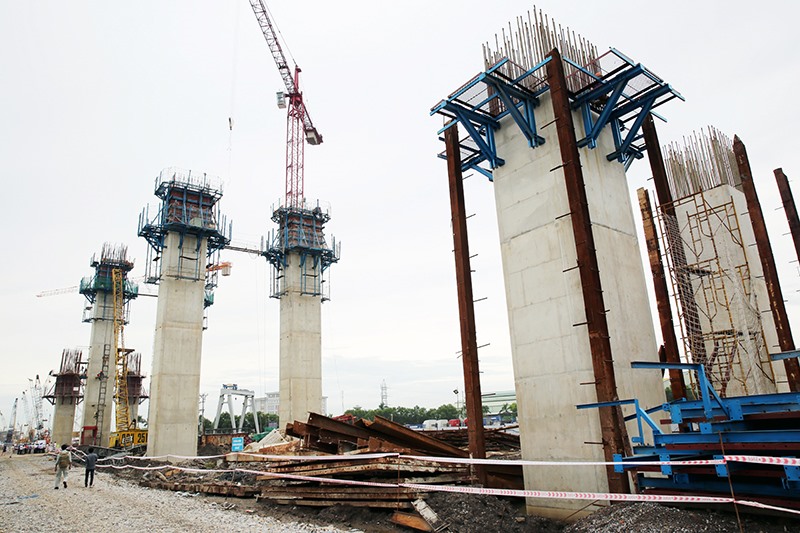 Dự án cầu Bạch Đằng - Một trong những dự án hạ tầng trọng điểm của tỉnh đang được nhà thầu đẩy nhanh tiến độ thi công. Ảnh: Đỗ Phương