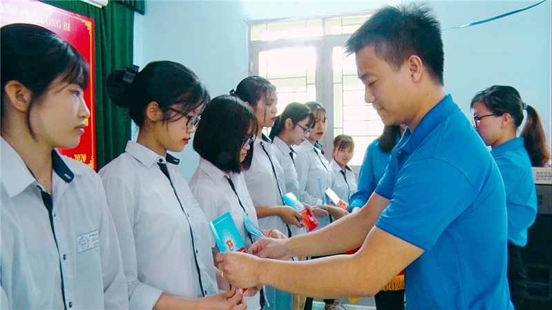 Đoàn viên mới được trao sổ đoàn và thẻ đoàn viên.