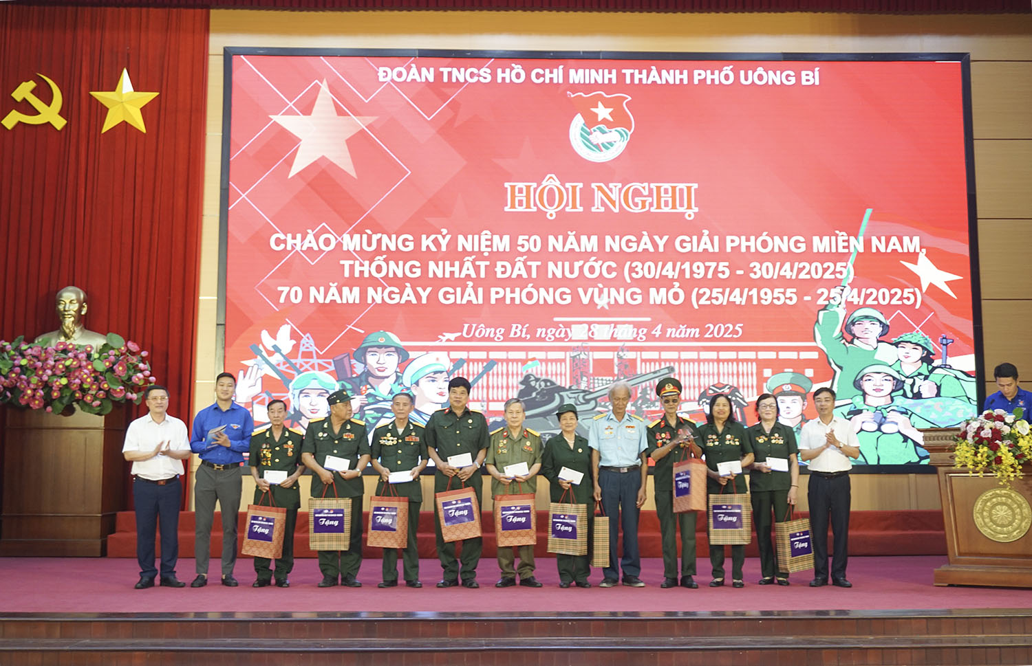Cũng nhân dịp này, Thành đoàn Uông Bí phối hợp với Đoàn Thanh niên Công ty Kho vận Đá Bạc – Vinacomin, Trung đoàn Cảnh sát cơ động Đông Bắc trao tặng 20 suất quà tri ân các cựu chiến binh từng tham gia Chiến dịch Hồ Chí Minh, thể hiện đạo lý “Uống nước nhớ nguồn”, ghi nhận đóng góp to lớn trong sự nghiệp giải phóng dân tộc.