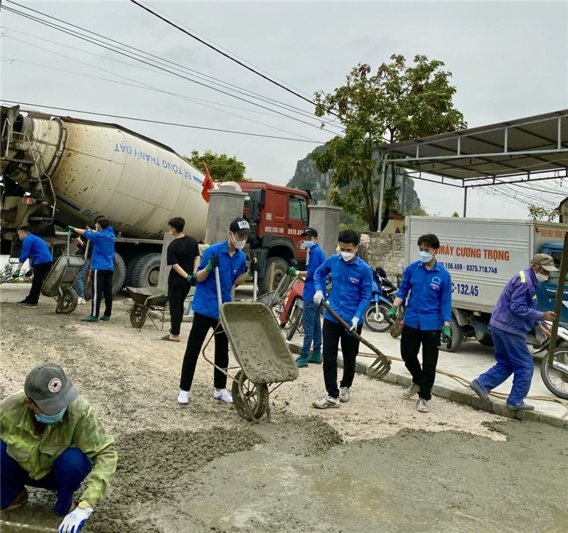 Đoàn Thanh niên phường Phương Nam hỗ trợ hộ nghèo làm sân bê tông.