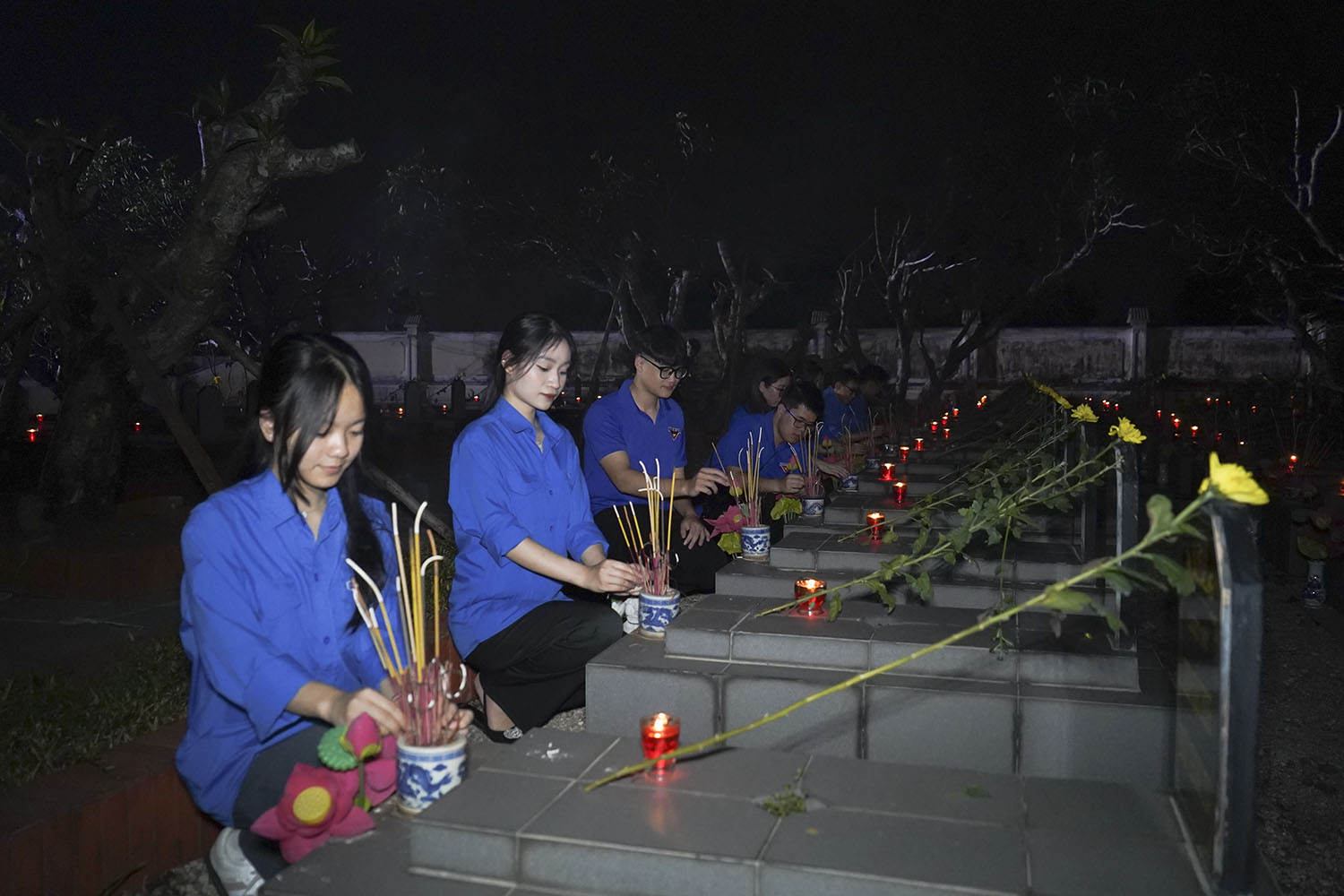 Sau phần nghi thức các đại biểu đã đến thắp hương tại từng phần mộ liệt sĩ. Mỗi nén hương, bông hoa và ngọn nến thắp lên là lời tri ân thành kính gửi tới các anh hùng liệt sĩ, đồng thời là lời hứa thiêng liêng của tuổi trẻ Uông Bí: tiếp nối truyền thống cha anh, sẵn sàng nhận và hoàn thành mọi nhiệm vụ mà Tổ quốc, Nhân dân giao phó. Tuổi trẻ Uông Bí nguyện không ngừng học tập, rèn luyện, lập thân, lập nghiệp, bảo vệ vững chắc chủ quyền, biên cương đất nước, góp phần xây dựng và bảo vệ Tổ quốc Việt Nam xã hội chủ nghĩa.