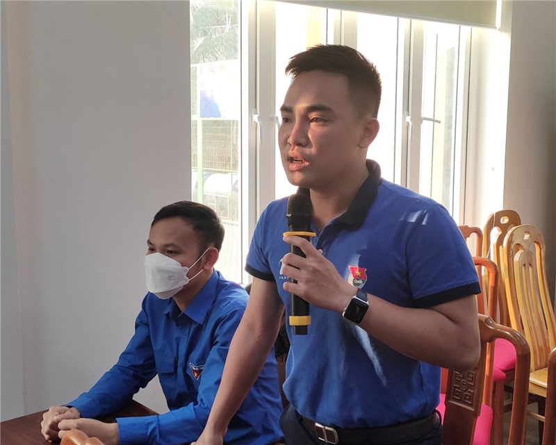 Đồng chí Phan Minh Toàn, Bí thư Thành đoàn Uông Bí phát biểu tại hội nghị
