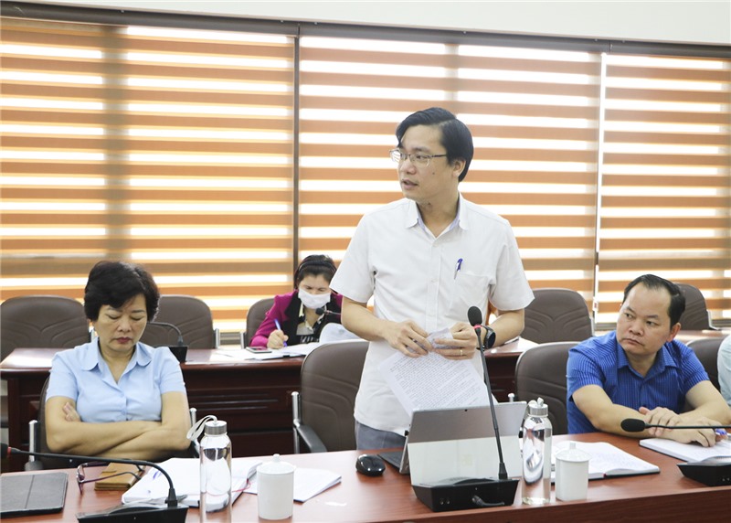 Lãnh đạo phòng TN-MT báo cáo kết quả thực hiện nhiệm vụ công tác tài nguyên môi trường.