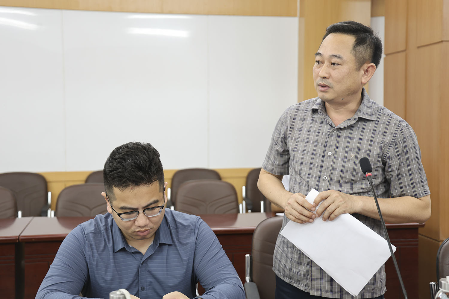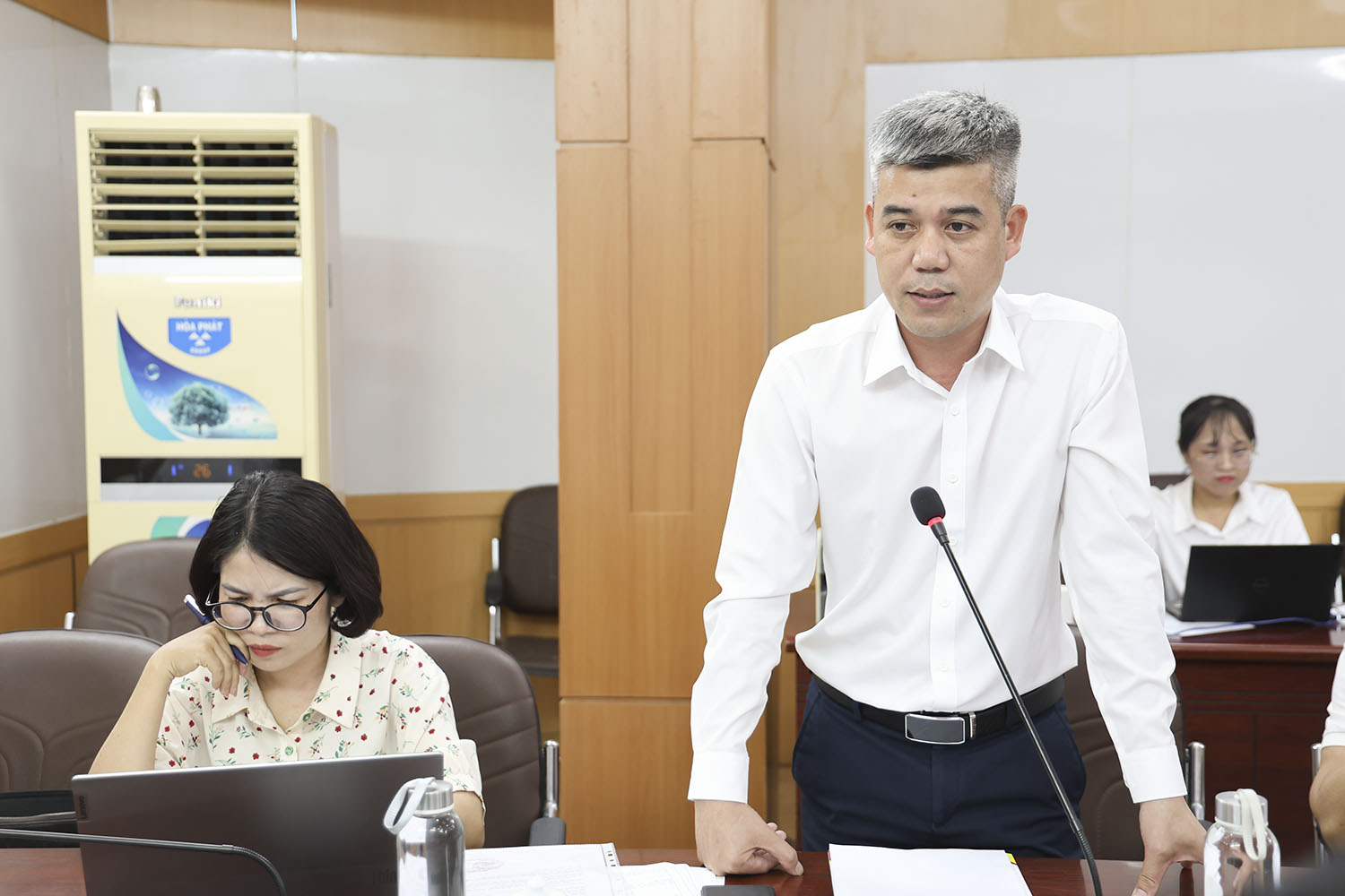 Đại diện doanh nghiệp – chủ đầu tư dự án trình bày các vướng mắc, đề xuất kiến nghị tại cuộc họp.