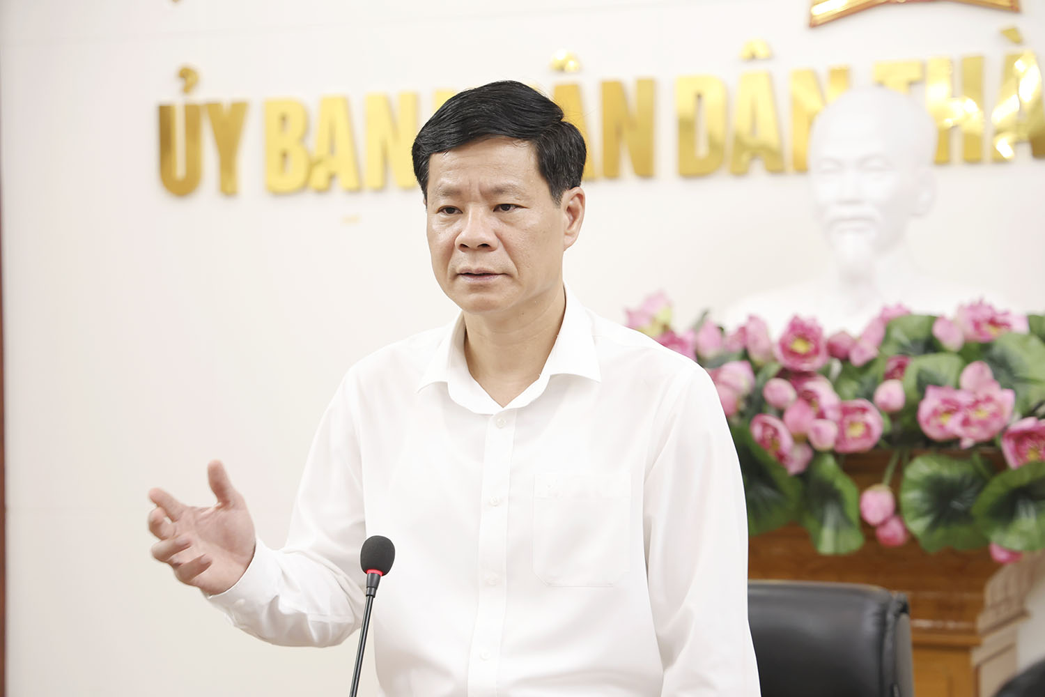 Đồng chí Phạm Tuấn Đạt – Phó Bí thư Thành ủy, Chủ tịch UBND thành phố phát biểu kết luận tại cuộc họp.