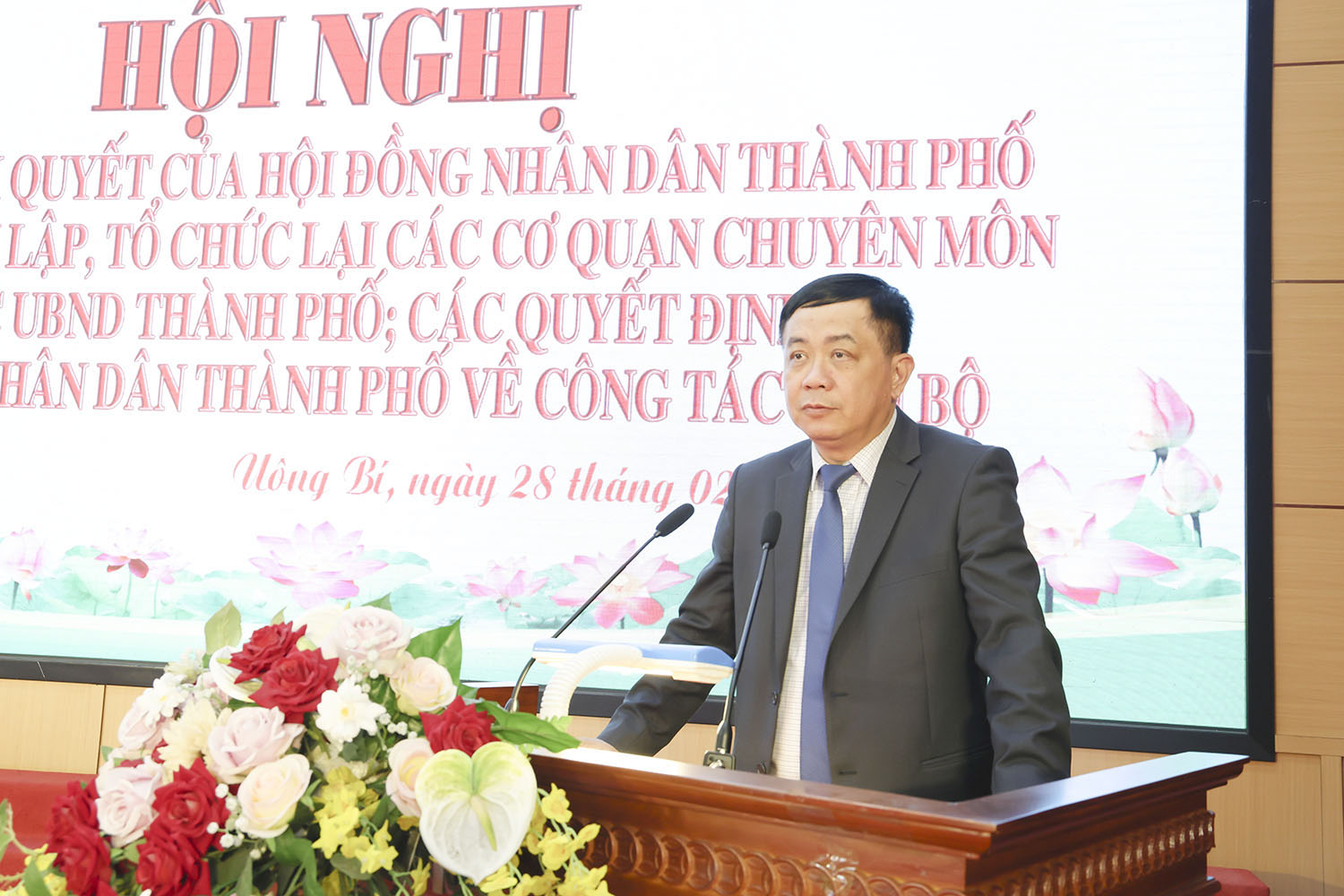 Tại hội nghị, lãnh đạo Phòng Nội vụ đã công bố Nghị quyết của HĐND thành phố về việc sắp xếp, tổ chức lại các phòng chuyên môn trực thuộc UBND thành phố. Cụ thể: Thành lập 4 phòng chuyên môn mới, gồm: Phòng Nội vụ trên cơ sở hợp nhất từ Phòng Nội vụ và Phòng Lao động - Thương binh và Xã hội; thành lập Phòng Kinh tế, Hạ tầng và Đô thị trên cơ sở Phòng Quản lý đô thị và tiếp nhận chức năng, nhiệm vụ lĩnh vực Công thương từ Phòng Kinh tế; thành lập Phòng Nông nghiệp và Môi trường trên cơ sở Phòng Tài nguyên - Môi trường và tiếp nhận chức năng, nhiệm vụ về lĩnh vực Nông nghiệp và Phát triển nông thôn từ Phòng Kinh tế; thành lập Phòng Văn hóa, Khoa học và Thông tin trên cơ sở Phòng Văn hóa - Thông tin và tiếp nhận chức năng, nhiệm vụ về lĩnh vực Khoa học và Công nghệ từ Phòng Kinh tế.